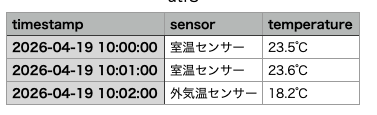 # 0  2026-04-19 10:00:00  室温センサー       23.5℃